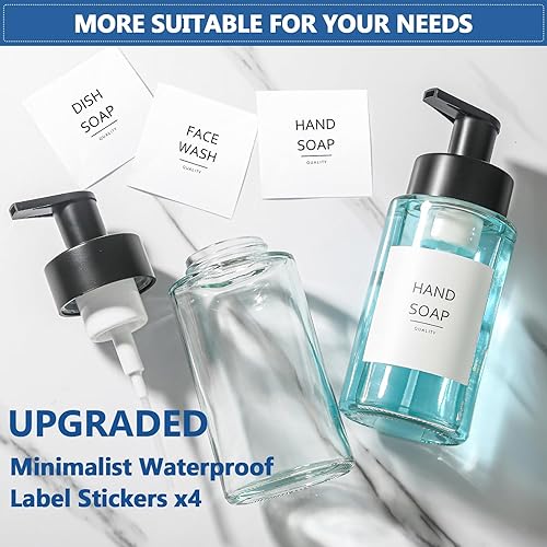 Comment on "Foaming Soap Dispenser, 10 oz/300ml Foaming Hand Soap Dispenser, 2 Pack Glass Foaming Soap Dispenser for Bathroom & Kitchen, Clear Refillable Foam Soap Dispenser Bottle with Waterproof Labels(Clear Bottle+black Pump,2 Pack)"