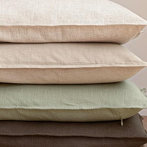 Foindtower Pack of 2, Decorative Linen Soild Throw Pillow Covers Soft Accent Cushion Case Boho Farmhouse Neutral Pillowcase for Chair Couch Sofa Bedroom Living Room Home Decor 20 x 20 Inch Light Brown(Seeding Green,22" x 22" (Pack of 2))