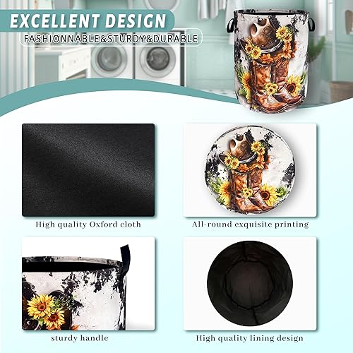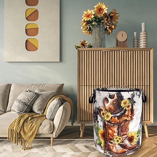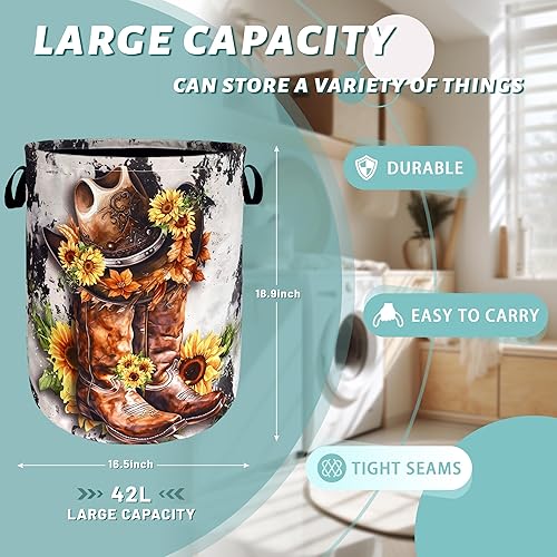 Retro Brown Cows Texture Laundry Basket Foldable Funny Laundry Hamper Oxford Cloth Animal Tote Bag Clothes Storage Bucket Toy Organizer 18.9" x 16.5" For Bathroom/Laundry Storage/Bedroom(Western Cowboy Sunflower Retro Cows)