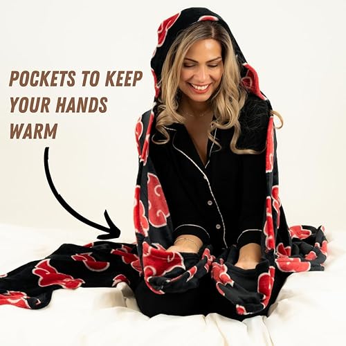 Franco Naruto Anime Akatsuki Cloud Bedding Super Soft and Cozy Wearable Hooded Throw Blanket, 70 in x 50 in (Official Licensed Product) Collectibles