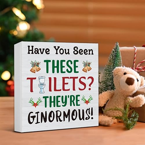 Comment on "Christmas Bathroom Decorations - Funny Christmas Decor, He Sees You When You're Pooping Bathroom Wooden Sign, Home Decor for Desk Table Shelf 5 X 5 Inches(Toilets)"