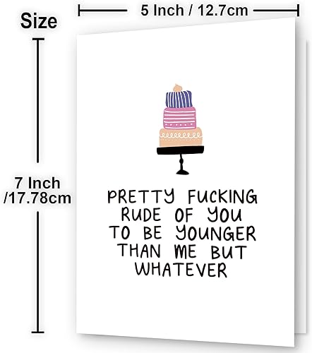 Funny Happy Birthday Cards for Sister & & Mom & Brother & Men & & Women, Best Firend, Greeting Card=7in x 5in(Folded), Envelope = 7.5in x 5.5in(F-8-RUDE)