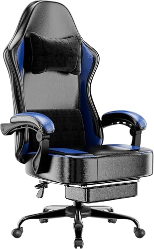 Gaming Chair, Computer Chair with Footrest and Lumbar Support, Ergonomic Video Game Chair with Headrest, Height Adjustable Gamer Chair Office Desk Chair, Purple(Black & Blue,Flank Cushion)