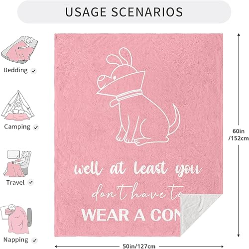 SIZE AND DESIGN: Spanning 60 x 50 inches, this present is ideal for ample warmth and snugness. Crafted from flannel, it boasts properties of softness and longevity. The design is simple and clear, printed with caring and humorous sentences and a cute cartoon dog, making the recovering person feel cherished and happy from the heart
