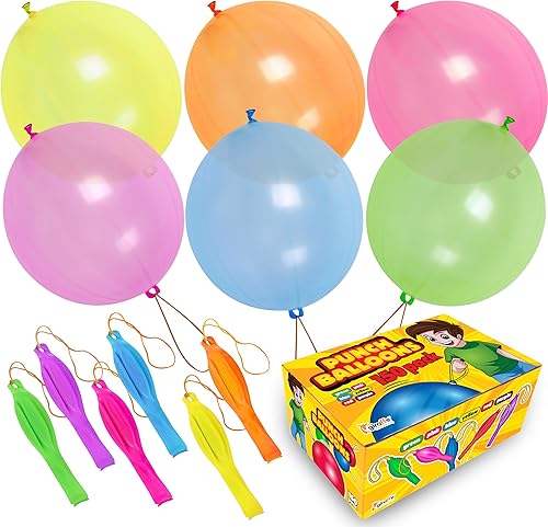 Round Shape Rubber Punch Balloons are Constructed with Latex Material which produces High Quality Balloon with String Which appears to be the best choice for kids and Toddlers willing to seek fun