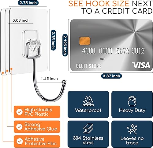 Comment on "GLUIT Adhesive Wall Hooks for Hanging Heavy Duty 22 lbs Hooks for Walls No Damage, Towel Sticky Clear Hook, Waterproof, Home, Bathroom, Kitchen, Office, and Outdoor 12 Pack(Large- 12 pcs)"