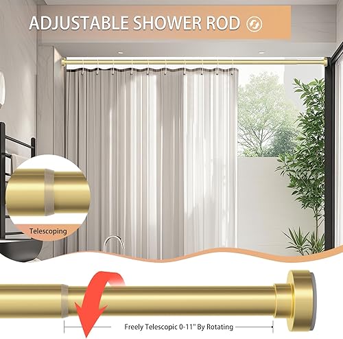 【Never Rust Gold Shower Rod】 The shower curtain rods are made of thick metal material with double-layer coating. The surface treatment provides excellent waterproof and stay shiny whether in your bathroom or outdoor patio