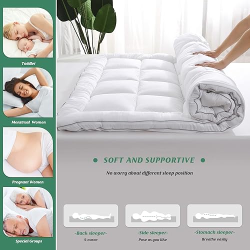 COMFORTABLE QUILTED MATTRESS PAD: Unlike most counterparts, this mattress pad king size bed is much more breathable and fluffy to create a natural sleep environment with exquisite soft touching feeling, massaging away your stress and fatigue to help you drift into sweet dreams quietly and comfortably.