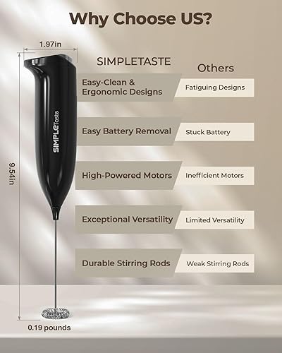 Comment on "SIMPLETaste Milk Frother Handheld Battery Operated Electric Foam Maker, Drink Mixer with Stainless Steel Whisk and Stand for Cappuccino, Bulletproof Coffee, Latte(Midnight Black,Without Stand)"