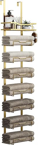Space-Saving Towel Storage Solution: This vertical bathroom towel storage maximizes door space in small bathrooms, efficiently organizing towels for easy reach. The included top basket caddy is a great bonus to organize small bathroom accessories.