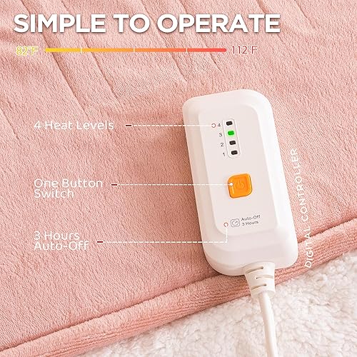 5 Heating Levels: 5 fast heating settings with one button,this heated blanket enables users to adjust the temperature as per their own preference,also the electric throw blanket is heated evenly and can be heated quickly,our electric blanket will assure you a peaceful and joyful life during the cold seasons.