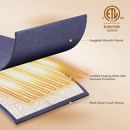 ETL Certified - The VELLUBAM electric blanket is rigorously tested and certified by ETL, ensuring enhanced safety and minimal electromagnetic radiation during use. Featuring advanced overheat protection, the heated throw blanket automatically stops heating or cuts power if temperatures rise too high, eliminating potential hazards