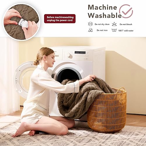 MACHINE WASHABLE: The power cord of the electric blanket's controller is detachable; please remove it before washing the electric blanket; it is recommended to air dry,and ensure it is completely dry before use; if you have any questions,please contact us