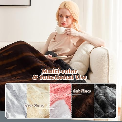 DELUXE DUAL-SIDED MATERIAL: One side boasts a plush faux fur that's not only visually appealing but is irresistibly soft to the touch. Flip to the other side to enjoy the comfort of thick sherpa, ensuring you're wrapped in warmth and luxury from every angle. Both materials combine to offer an experience that's warm, thick, and sumptuously soft.