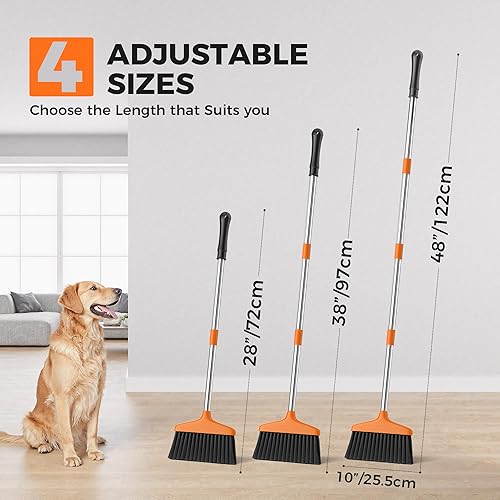 Stainless Steel Broom Handle: This broom handle is made of stainless steel so that it won't rust and durable. what's more, this 4-section handle can be adjustable according to your actual cleaning needs. Handle length size including broom head: 48inches.
