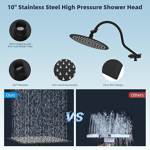 Comment on "Hibbent All Metal High Pressure Rainfall 10 Inch Shower Head/Handheld Showerhead Combo/ 12 Inch Adjustable Curved Shower Extension Arm, 10-Spray, 71-inch Hose, Adhesive Showerhead Holder, Matte Black(Round 10'',Matte Black)"