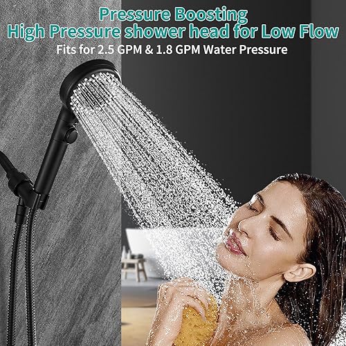 High Pressure 6 Setting Shower Head Hand-Held with ON/OFF Switch and Spa Spray Mode - Hand Held Shower Head with Handheld Spray - Shower Head with Hose - Chrome(6 Modes and Power Wash,Matte Black)