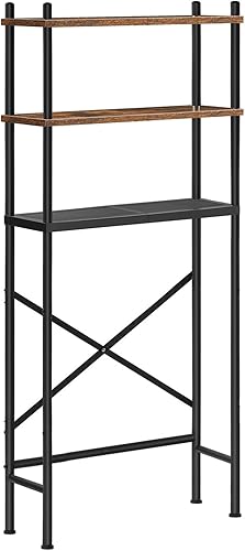 HOOBRO Over The Toilet Storage, 3-Tier Over Toilet Bathroom Organizer, Freestanding Above Toilet Shelf with Adjustable Feet, Space Saving, Easy Assembly, Rustic Brown and Black BF63TS01(Rustic Brown + Black)