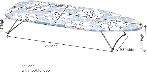 Household Essentials 122101 Small Tabletop Ironing Board with Folding Legs - Magic Rings Cover and Pad,Blue Rings(Blue)