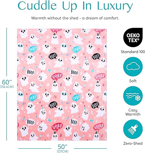 Joiedomi Halloween Throw Blanket - Soft Plush Spider Webs Bat Pumpkin Blanket - Cozy Flannel White Halloween Decoration for Party Sofa Bed Living Room 50"x60"(Pink Cute Ghost)