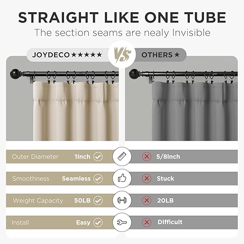 Comment on "Joydeco Black Curtain Rods for Windows 32 to 120 inches, 1 inch Diameter Heavy Duty Adjustable Curtain Rods for Bedroom, Sliding Glass Doors, Outdoor, Patio(Black,32"-120")"