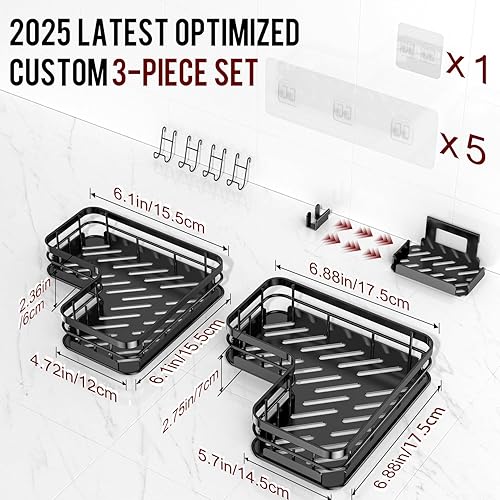 Comment on "Large Capacity Shower Caddy, Heavy-Duty Adhesive Shower Organizers with Custom Aesthetic Design Soap, No Drilling Corner Shower Shelves, 5 Hooks for Bathroom Accessories - 3 Pack(Metal Triangle -Black)"