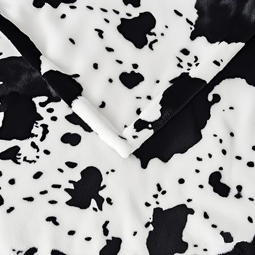 Leopard Print Blanket Fleece Throw for Bed Sofa Travel and Camping, Super Soft Cozy Fluffy Plush Cheetah Print Blanket for All Seasons 50"x60" (Dark Brown)(02 Black Cow,60"x80"-Blanket)