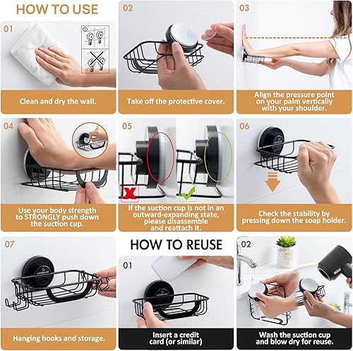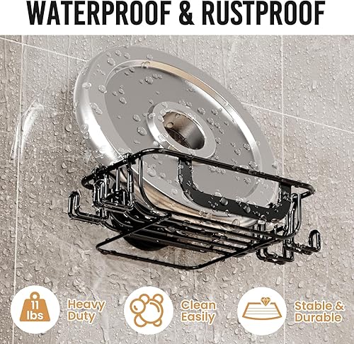 PATENTED PRODUCT & SUPER SUCTION POWER: Suction cup with patent bionic design of octopus tentacles have powerful suction and superior durability. It is waterproof and oilproof. The suction cup soap dish for shower wall can hold up to 11 LBS, is so stable and durable