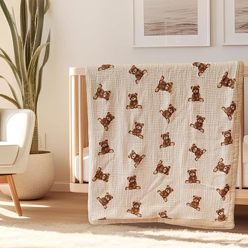 Little Jump 2 Layers Muslin Cotton Baby Blankets - Teddy Bear Toddler Quilt Crib Blanket - Gender Neutral Crib Blanket for Baby Boys and Girls 47"x 47" (Teddy Bears)(Teddy Bears)