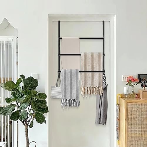 Livabber 3-Tier Over The Door Towel Rack, All Metal Towel Rack with Hooks for Door Hanging, Behind Door Towel Bar Towel Storage Holder for Bathroom Accessories, 19.37" L x 5.9" Wx 24.4" H(Black)