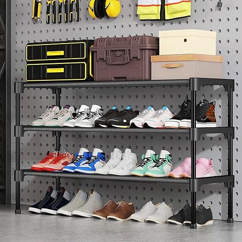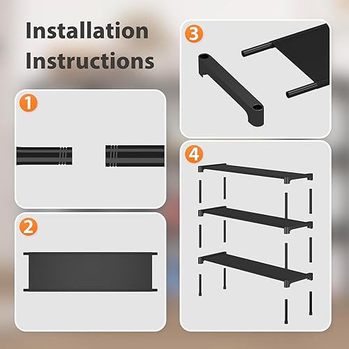 3.Each layer can accommodate 5-7 pairs of shoes! Large capacity, the shoe rack adopts a full steel tube frame, which is thicker and more sturdy. This is the capacity of this 33.85 inch long x 11.8 inch wide x 14.1 inch high shoe rack. Therefore, with multiple layers of storage, please always store your sports shoes, flat shoes, and shoes at home for neater storage and to find a comfortable place for your shoes