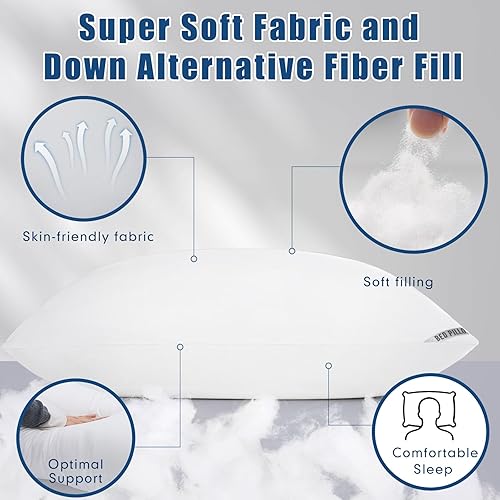 Luxury Hotel Pillows for Sleeping 2 Pack,Bed Pillows Standard Size Set of 2,Down Alternative Filling,Pillows for Back,Stomach and Side Sleepers(White(2pack),Standard)