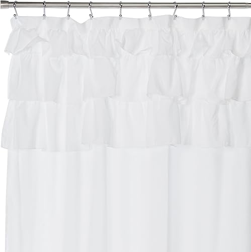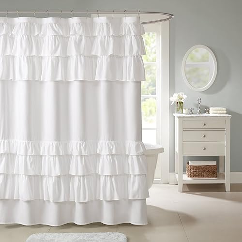 Madison Park Grace White Shower Curtain,Solid Cottage Top Shower Curtains for Bathroom, 72 X 72, White