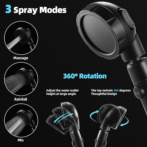 【3 MODE ADJUSTABLE SETTINGS】Power Massage, water saver mode or mixed mode – the choice is yours. Dense small holes designed makes the generated water mist be thicker, give you a SPA-like shower experience while saving water by 30%. Upgraded 360 rotation angle-adjustable solid swivel ball joint nut for reliable leak-free connection and different angle position shower needs.