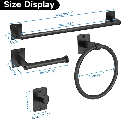 Comment on "Matte Black Bathroom Accessories Set, KLJKPA 4 Pieces Bathroom Hardware Set, 24 inch Towel Bar, Towel Racks for Bathroom, Robe Towel Hooks, Toilet Paper Holder Wall Mounted(Black,16 inch)"