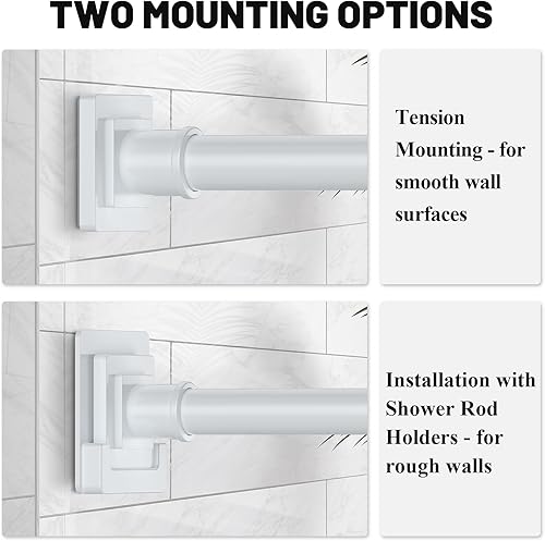 Shower Rod with Holders: The black shower curtain rod can be installed in two ways: Rough walls can be installed using the holders. Smooth walls are mounted using the tension provided by the spring.