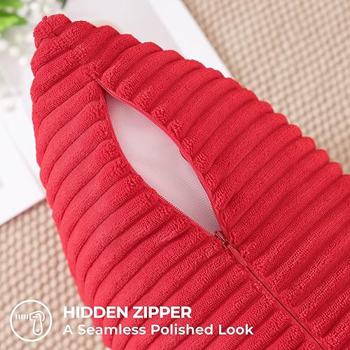 Mecatny Corduroy Decorative Throw Pillow Covers 18x18 Set of 2 for Sofa Living Room, Soft Neutral Boho Couch Pillow Covers for Home Decor, Cream White(Red,20" x 12" (Pack of 2))