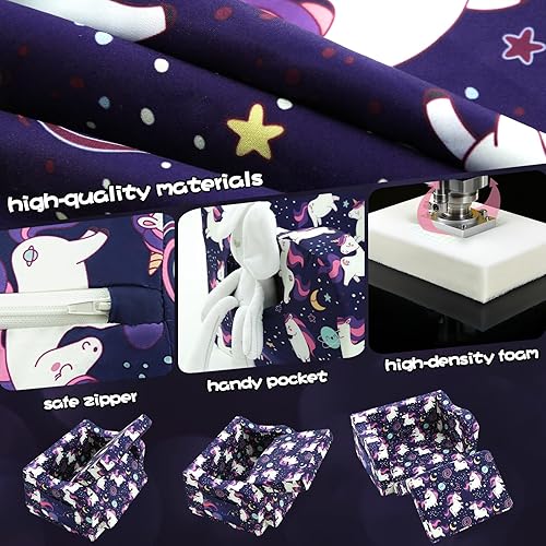 MeMoreCool Toddler Chair Comfy 1-3 Years Old, Kids Couch for Playroom, Convertible Glowing Dinosaur Flip Out Sofa, Kids Furniture Floor Recliner Chair Bed(Navy Unicorn,Print)