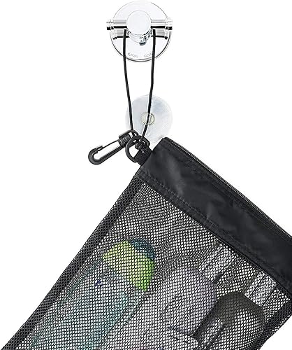 • MULTIPLE HANGING OPTIONS. You will always find a way to hang this bag. High strength suction cup is ideal for the shower walls with no available hooks. Long poly cord strap can be used to hook it around the shower handle or other object. Multifunctional snap hook can be used to hook onto shower curtain ring.