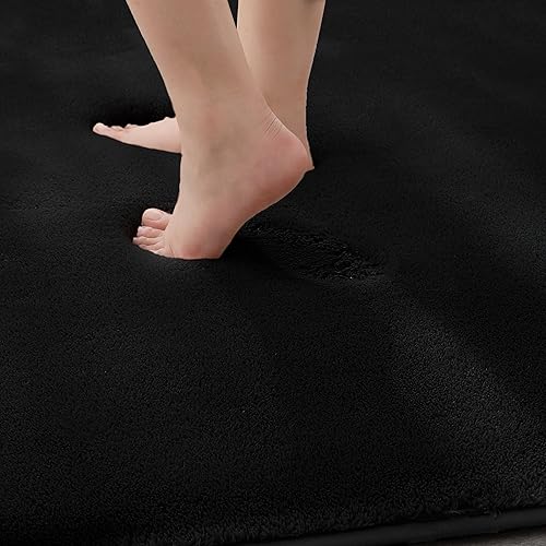 MINIDEAR Bathroom Rugs 17"x24" Light Grey - Thick Memory Foam Bath Mat, Ultra Soft & Plush Fluffy, Non-Slip, Quick Dry, Absorbent Washable Floor Microfiber Mat for Shower, Tub, Home Decor Accessories(Black,1'8" x 2' (Contour:20"x24"))