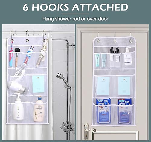MISSLO Hanging Mesh Pockets Hold 340oz/1000ml Shampoo Shower Organizer with Over the Door Hooks and Shower Curtain Hooks(White,1)