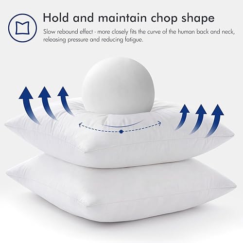 PREMIUM MATERIAL: These pillow inserts are filled by 1615g/3.56lb premium feather down(20% more than other) and the covers are double layered.The cover contains woven cotton layer outside and cotton layer inside to prevent down overflowing.