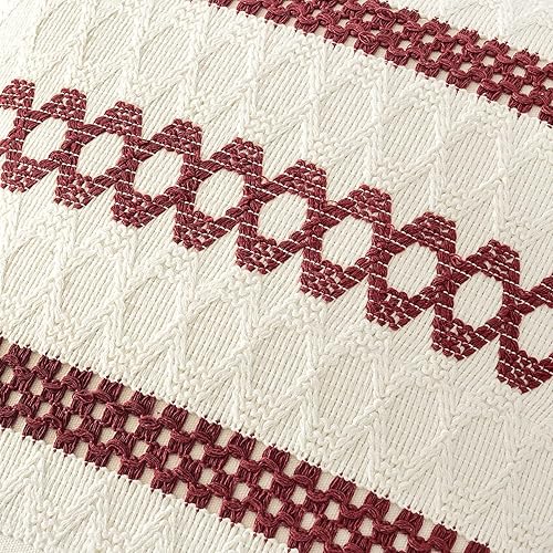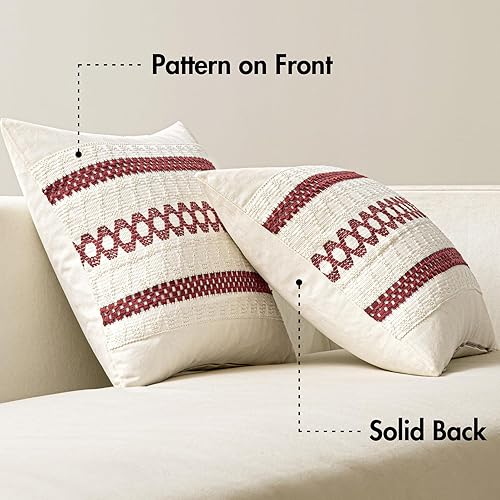 MIULEE Set of 2 Sage Green Boho Decorative Pillow Covers 18x18 Inch Farmhouse Rustic Couch Throw Pillows Modern Summer Cotton Cushion Covers Retro Cute Macrame Woven Home Decor for Bed Sofa Chair(Burgundy,20" x 20" (Pack of 2))