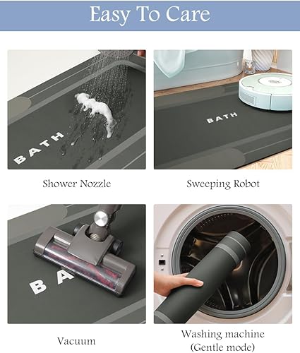 Easy Clean& Quick Dry: Cleaning is a breeze with the stain-resistant surface, making it ideal for households with pets. A simple wipe or rinse will restore the shower rug to its brand-new appearance. The quick dry bath mat's numerous tiny pores facilitate fast water evaporation in natural air, magically vanishing watermarks within minutes. Bathroom mat quick dry and won’t be too damp for the next user.