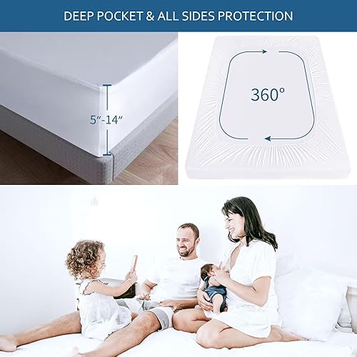 Elastic Stretchy Skirt: Queen waterproof mattress protector fits up 5"-18" high mattresses and 360° strong elastic band provides full protection, ensuring it hug each corner of the mattress and avoid shifting. Make the mattress protector is very easy to remove off and machine wash.