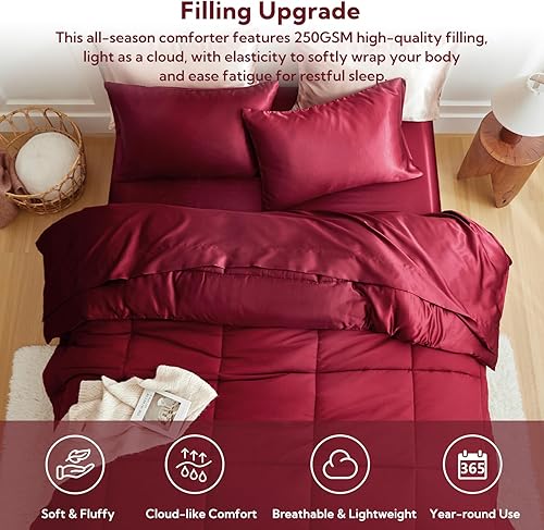 Innovative Reversible Design: Experience the luxury of satin without slipping! The side touching your skin is made of ultra-soft microfiber for a comfortable, non-slip sleep experience, while the reverse features glossy satin for an elegant look. Transform your bedroom with our reversible comforter!