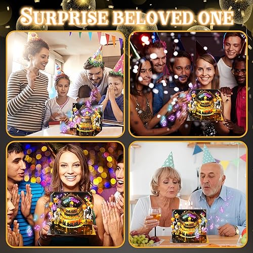 Blowable LED Candle: Open the 3d pop up birthday greeting card to automatically play cheerful birthday music. Blow out the candle to set off a display of colorful fireworks, creating a memorable birthday surprise
