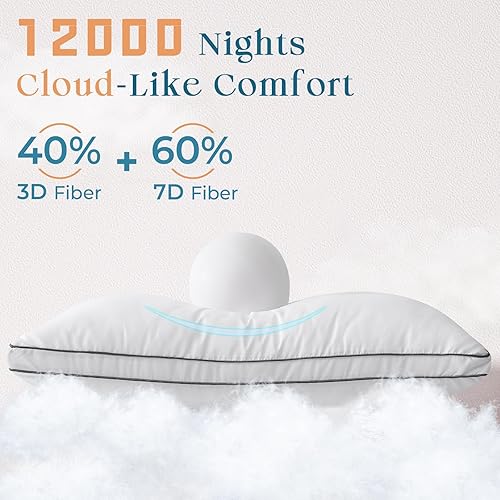 Soft Yet Supportive: Filled with 7D + 3D fiber for a soft yet supportive feel, these bed pillows mold to your head and neck like a gentle hug, providing the suitable balance of softness and firmness for a restful night’s sleep