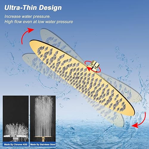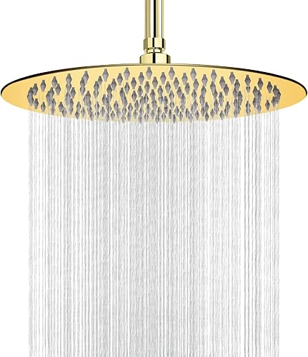 NearMoon Rain Shower Head, Ultra-Thin Design-Pressure Boosting, Awesome Some Experience, High Flow Stainless Steel Rainfall Head (8 Inch,Chrome Finish)(Chrome Gold,12 Inch)