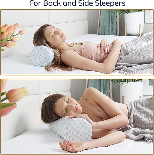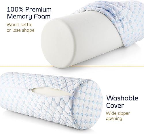 Nestl Neck Roll Pillow for Pain Relief - Premium Memory Foam – Bolster Pillow for Sleeping with a Breathable Cooling Cover - Comfy Cylinder Neck Roll Pillow(Soft)